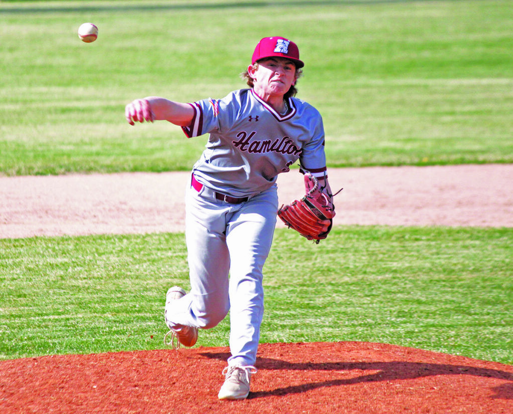 Hamilton pitcher Cash Lawrence gave up three hits and three runs and struck out four batters in Hamilton’s 4-5 loss to Florence on April 10. Photo by Scott Sacry.