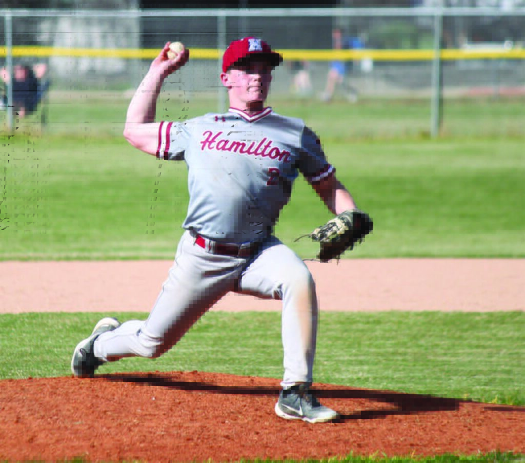 Hamilton pitcher Jackson Lubke struck out 14 batters and allowed only 4 hits in Hamilton’s 2-1 victory over Bigfork in a state play-in game on Saturday, May 17. Photo by Scott Sacry.
