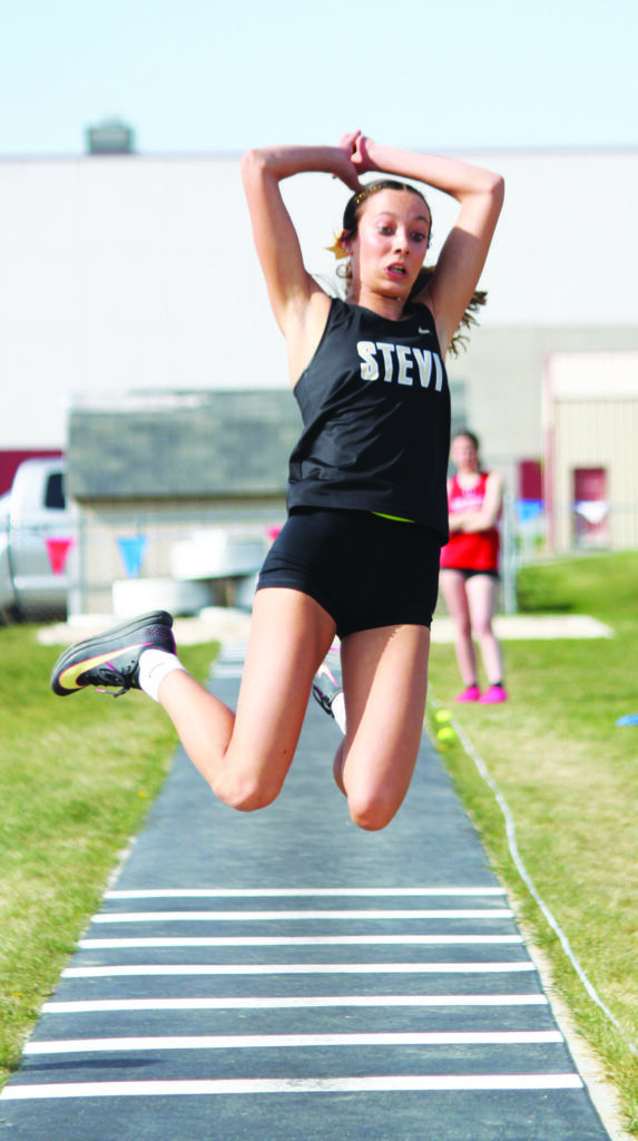 Stevensville’s Reagan Johnstone has the best 100m hurdles time, the best triple jump, the 2nd best long jump and the 5th best high jump in Class A this year. Photo by Scott Sacry.