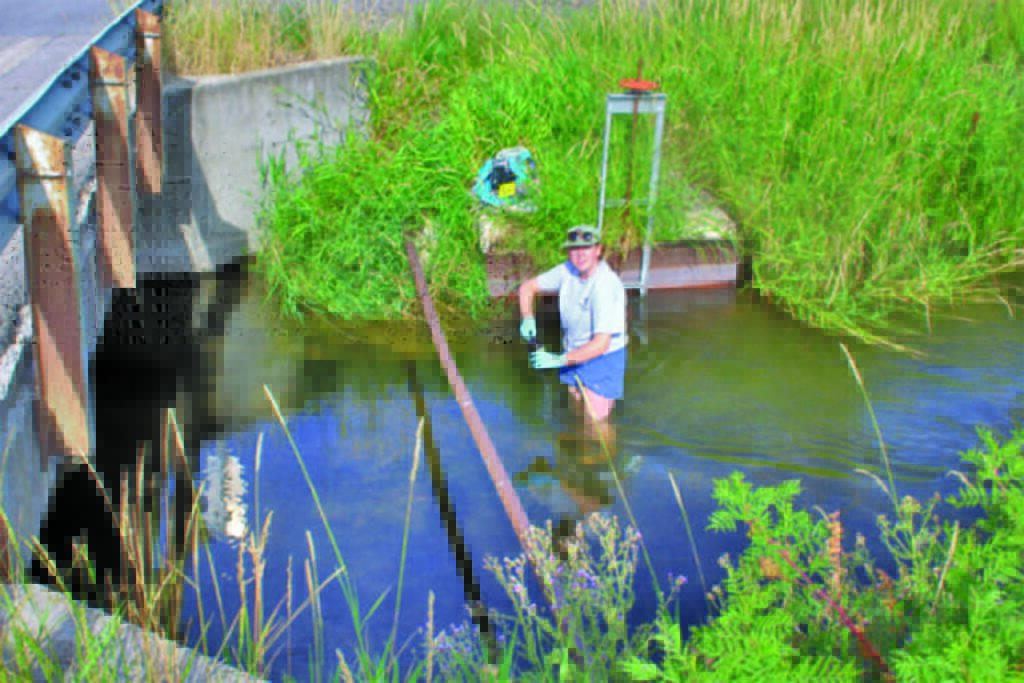 Big Sky Watershed Corps member Chloe Czachor, who is leading the field work in the pesticide monitoring project, was in the Bitterroot last week visiting eleven different sites from Florence to Hamilton checking physical parameters of the water and grabbing water samples for lab analysis. Photo by Michael Howell.