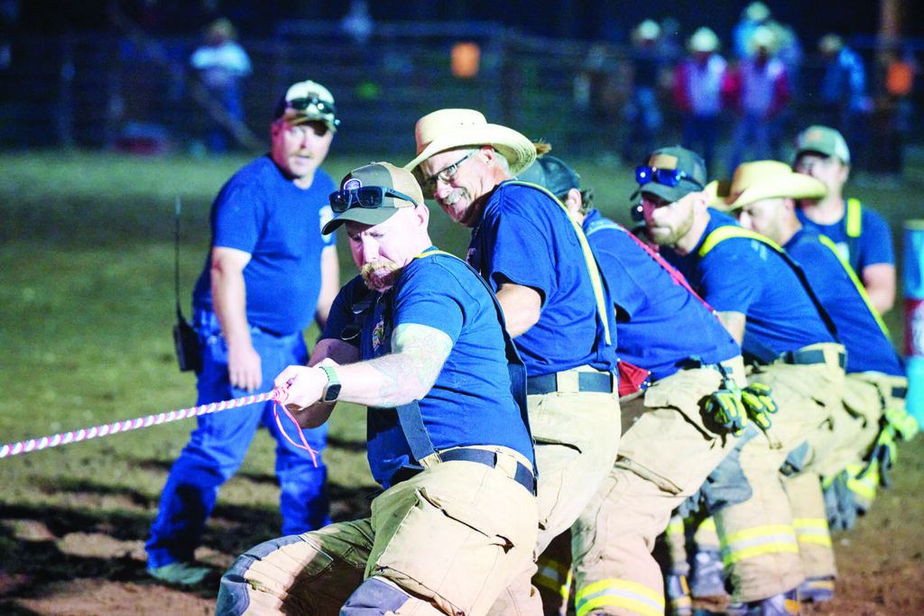 Firefighters during the tug-o-war at the rodeo in Darby. Photo by John Rudow.