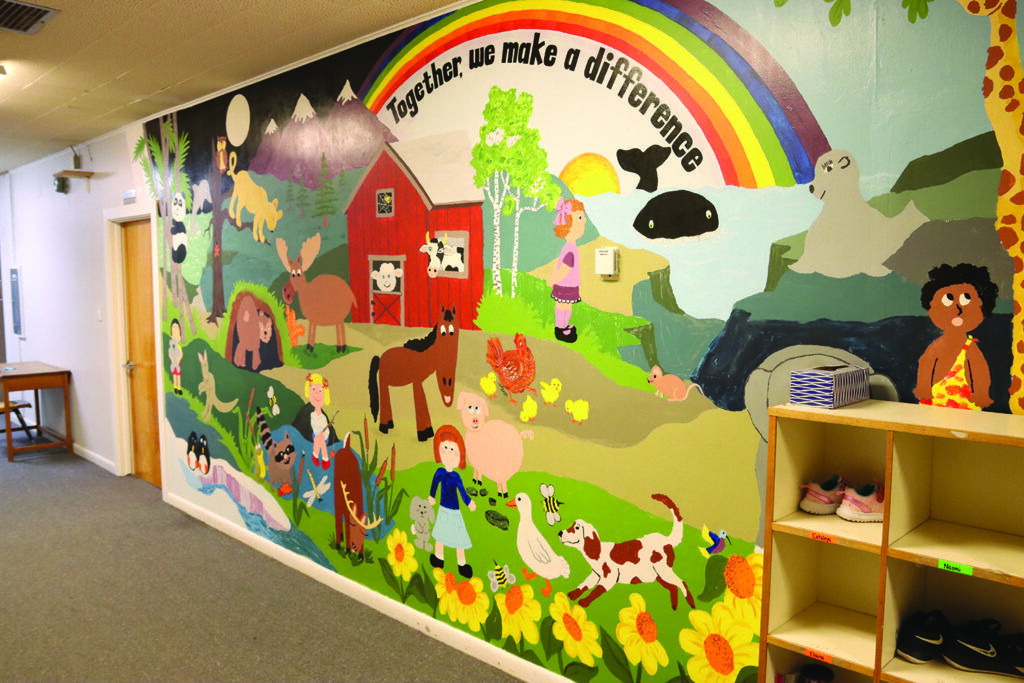 Amongst all the changes, one thing has stayed the same and according to Beck, they never considered getting rid of it. They have retained an original mural, painted by a teacher and her students. The teacher was “Mrs. Holmes,” according to Beck, and the mural has been an integral part of the building since they purchased it. It is a holdover from the old Grantsdale school. According to Beck, “For a lot of people, this was a very special place.”