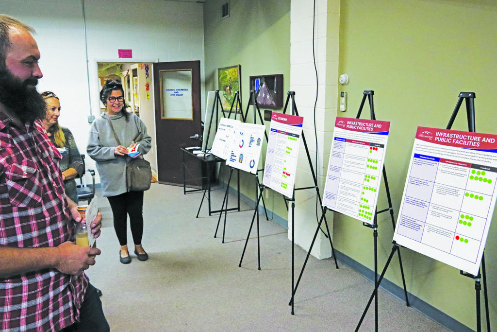 On Wednesday, October 22, the Stevensville Planning and Zoning Board held an open house to present information they have been collecting, as well as survey results and community statistics. All this information is going into the new Stevensville Town Growth Policy update that they have been working on for the better part of the last year. They’ve received assistance from the Montana Department of Commerce (DOC) and Great West Engineering. Representatives from the Town and both the DOC and the engineering firm were present at the open house.