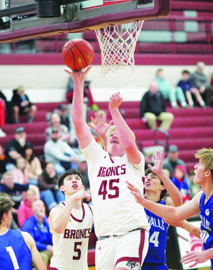 Hamilton’s Cash Lockhart (#45) and the Hamilton boys basketball team played Corvallis in the second boys divisional play-in game in Hamilton on Saturday, Feb. 28. Hamilton defeated Corvallis 57-38 to punch their ticket to divisionals. Photo by Scott Sacry.