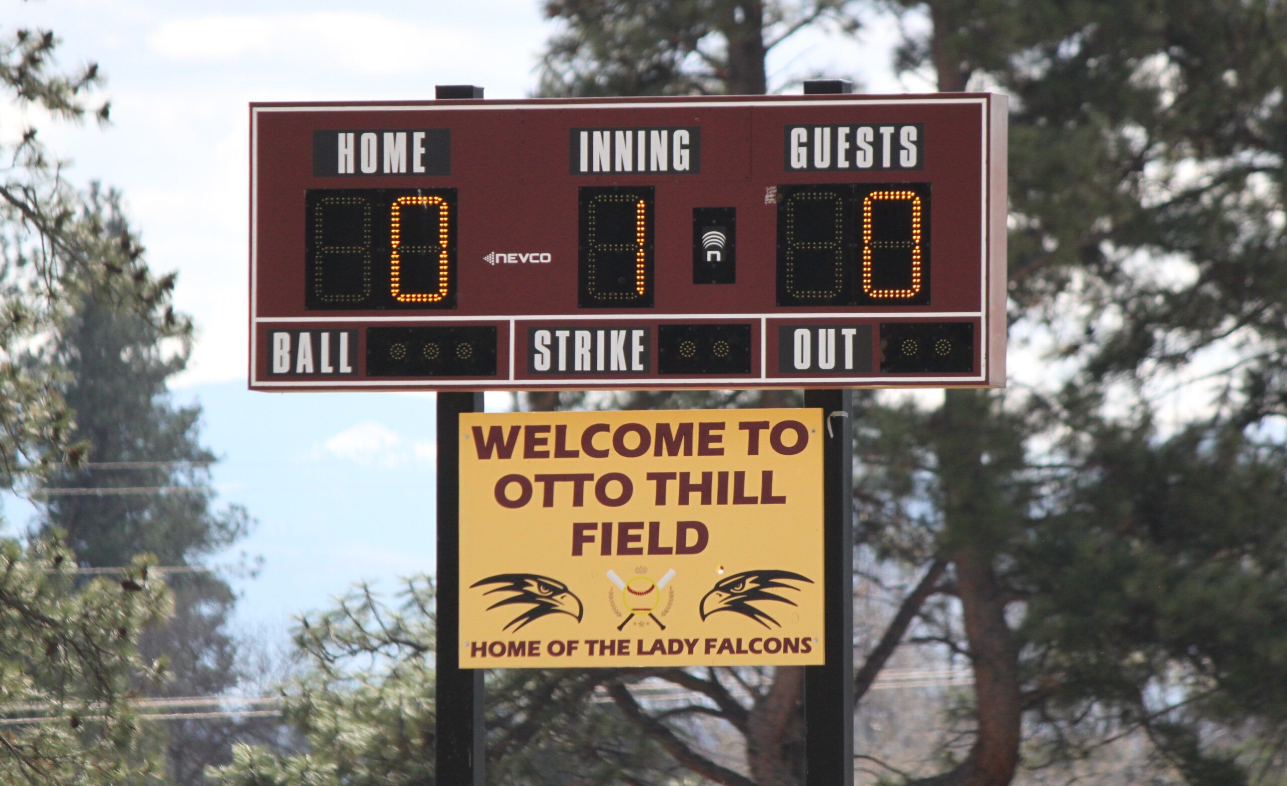 The pregame ceremony included the dedication of the field to Thill, first pitches thrown out by former Florence softball players, and the unveiling of a plaque under the outfield scoreboard reading “Welcome to Otto Thill Field. Home of the Lady Falcons.” As an added bonus, USA Softball of Montana posthumously inducted Thill into its Montana Hall of Fame, and they presented a trophy to Thill’s daughter during the ceremony.
