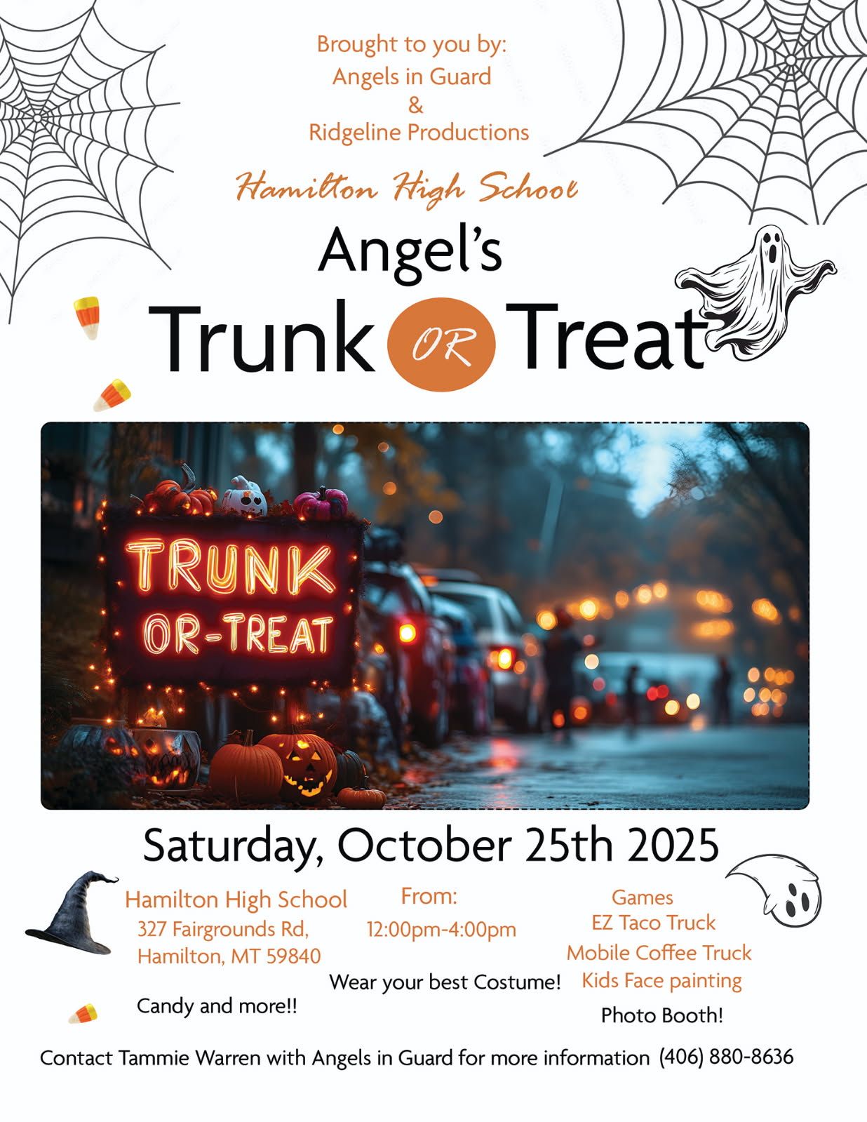 Angel’s Trunk or Treat will be held at the Hamilton High School parking lot on Saturday, October 25 from Noon to 4pm.
